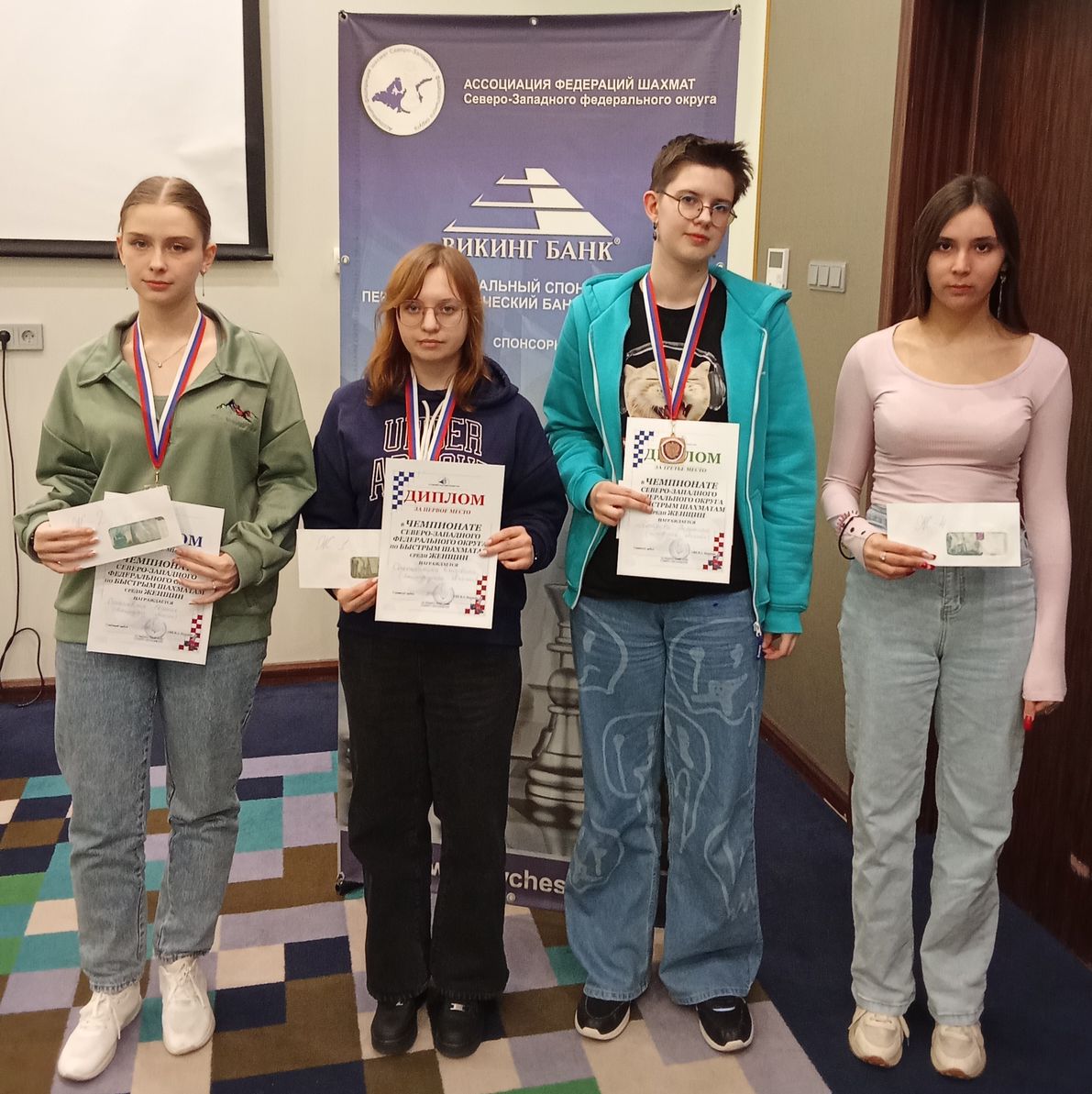 ПОЗДРАВЛЯЕМ представительниц округа, показавших прекрасные результаты на завершившемся Первенстве РФ по шахматам: Виктория МАХИНА (Вологодская область) стала победительницей в возрастной категории девочки до 13 лет, а Евгения САТАНОВСКАЯ (Новгородская область) заняла второе место среди девушек до 19 лет! Отметим результаты Артема ГАВЫРИНА (Ленинградская область), который занял 5 место среди мальчиков до 9 лет и завоевал право участия в Первенстве РФ в следующем году, а также Полины ЗИНОВЬЕВОЙ (Вологодская область, Д9), Сергея КУЗНЕЦОВА (Калининградская область, М9) и Михаила НЕФЕДОВА (Калининградская область, Ю15), попавших в десятку сильнейших в своих возрастных группах...