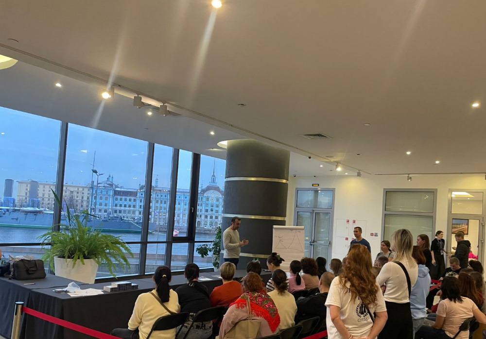 Семинар прошел в холле отеля "Санкт-Петербург" с видом на реку Неву и Крейсер Аврора